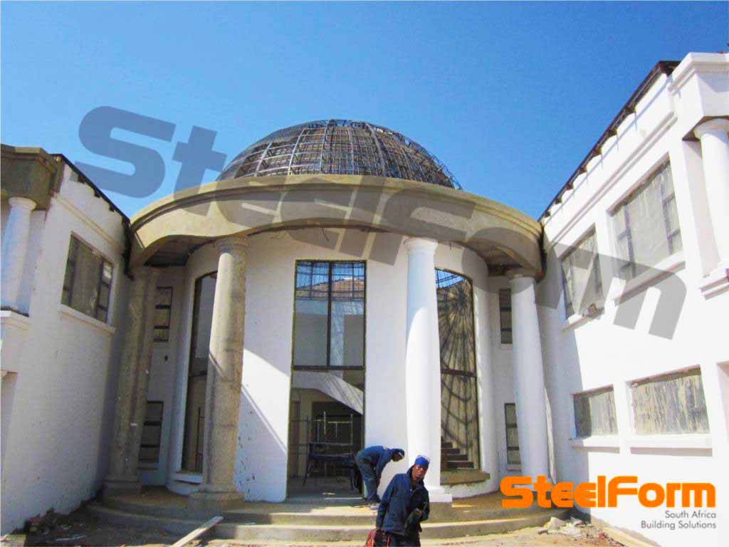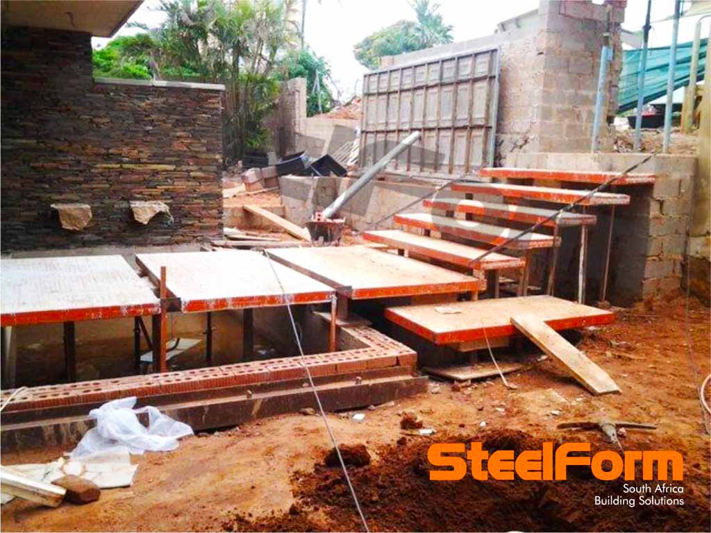 Please note that stairway shuttering, steel arches, steel lintels and shuttering for balconies are registered designs and patented, which patent is held by Mr. Christopher ‘Hill of Steelform SA’. Any shuttering supplied by any company other than Steelform SA is then a forgery & copyright infringement applies. Our shuttering is that of high guaranteed quality. South African patent 2004/0117.