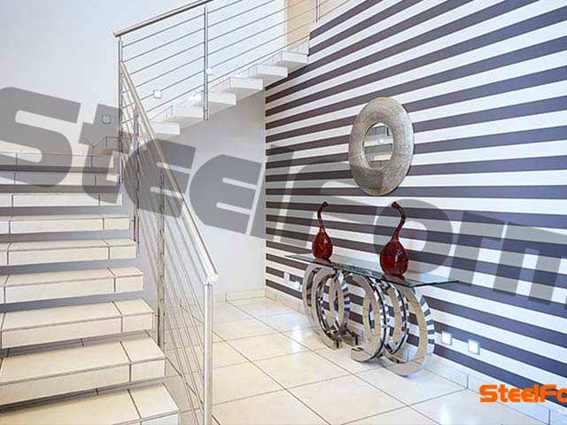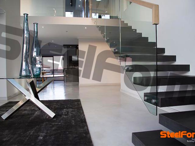 Steelform is a leading straight cantilever stair designer and manufacturer. A cantilever is a beam anchored at only one end. Cantilevered stairs have independent steps anchored to a bearing wall or a stringer beam embedded in a wall by steel bolts or pins. This creates the impression of floating stairs. Our cantilevered staircases can be manufactured in various materials, shapes, and finishes.